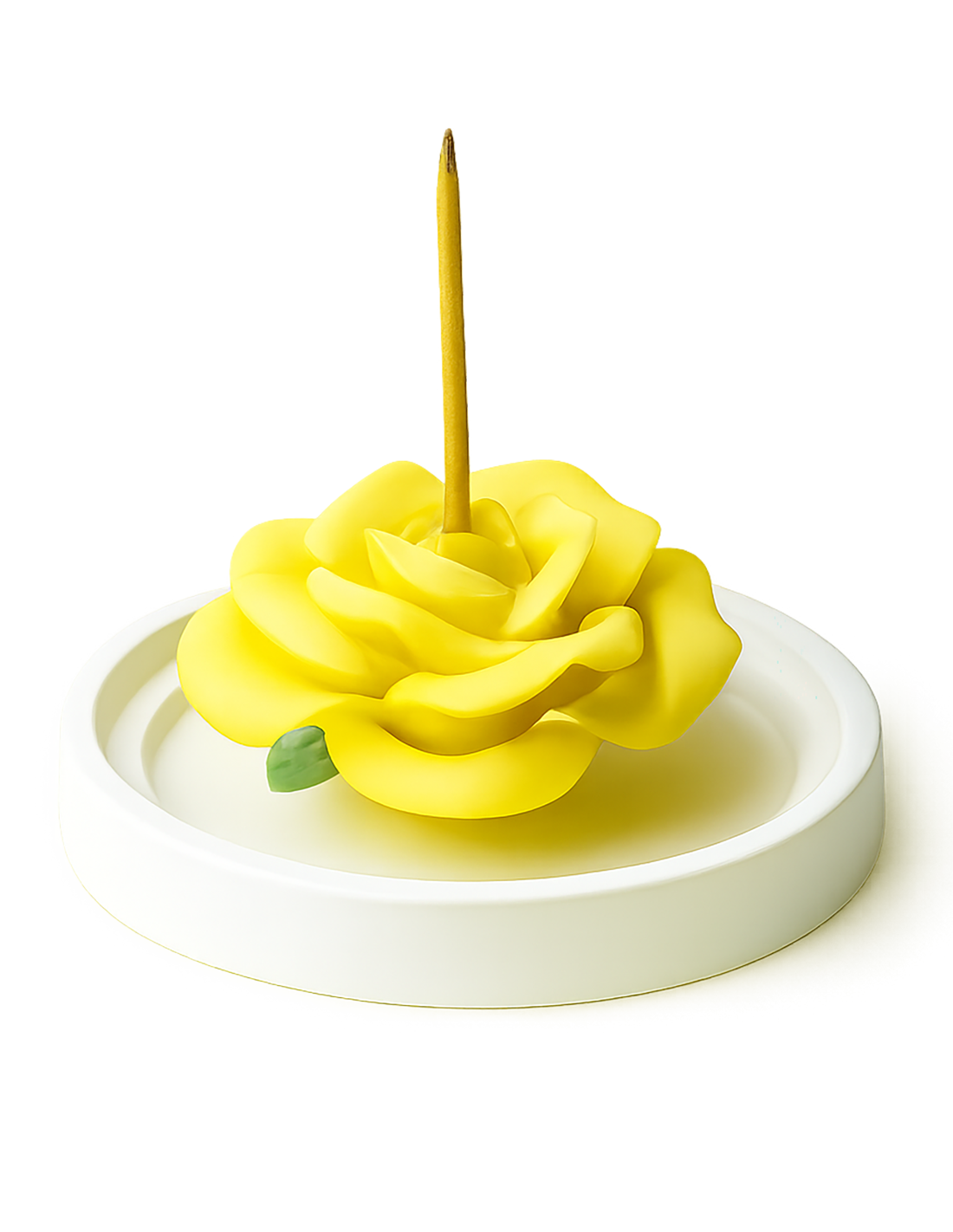 Dieser gelbe Rosen-Räucherstäbchenhalter aus feiner Keramik wird in Dehua, der weltbekannten Porzellanstadt Chinas, handgefertigt. Die detailreiche Rosenform dient als eleganter Sockel für Sandelholz-Räucherstäbchen und als dekoratives Element für Wohnzimmer, Büro oder Schlafzimmer. Mit einer Box hochwertiger Sandelholzstäbchen für entspannende Duftmomente