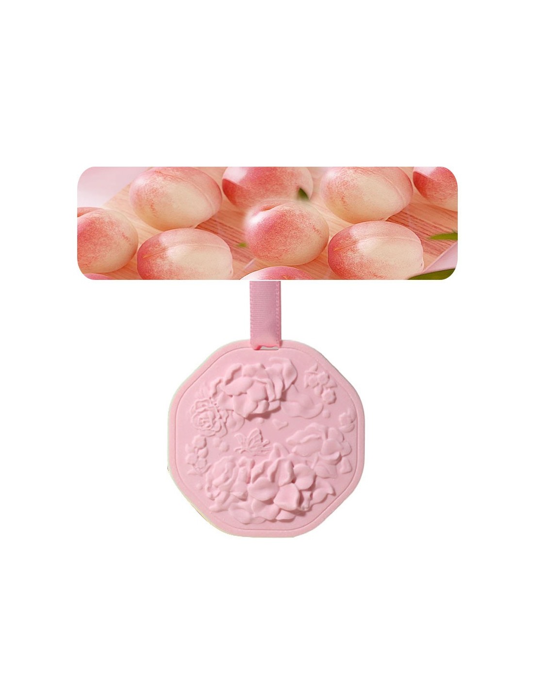Les notes de tête de pêche blanche juteuse, de thé oolong parfumé et de pamplemousse vivifiant créent une ambiance énergisante et délicate. Que ce soit comme désodorisant pour voiture, parfum pour tiroirs ou armoire, ce pendentif diffuse un arôme fruité-floral subtil. Son design léger et sa surface finement sculptée en font un objet décoratif idéal pour les petits espaces comme les salles de bain ou les chambres.