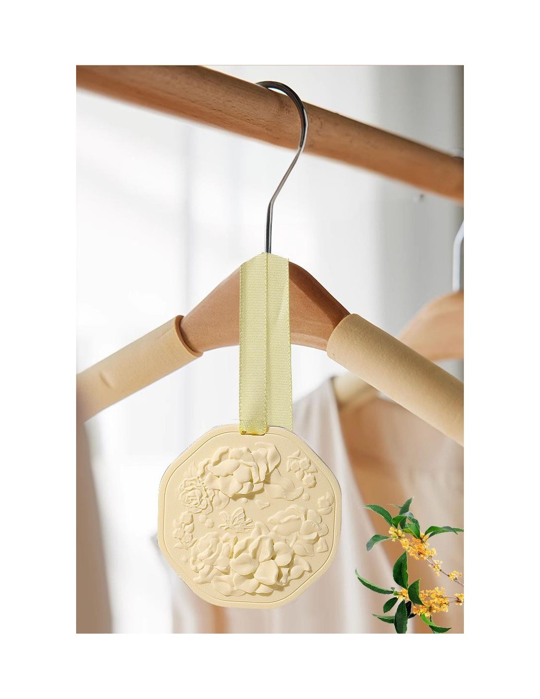 オスマンサスティーの香りが漂う美しい吊り下げ式芳香ペンダントで、車内やお部屋、オフィスに自然な香りをプラスしましょう。車、クローゼット、靴箱、寝室、浴室、リビングなど、さまざまな場所で使用でき、嫌な臭いを取り除きながら、インテリアのアクセントにもなります。繊細な花模様が彫刻されたデザインで、重さはわずか38g。ギフトボックス入りで、香り好きの方や車好きの方への贈り物にも最適です。